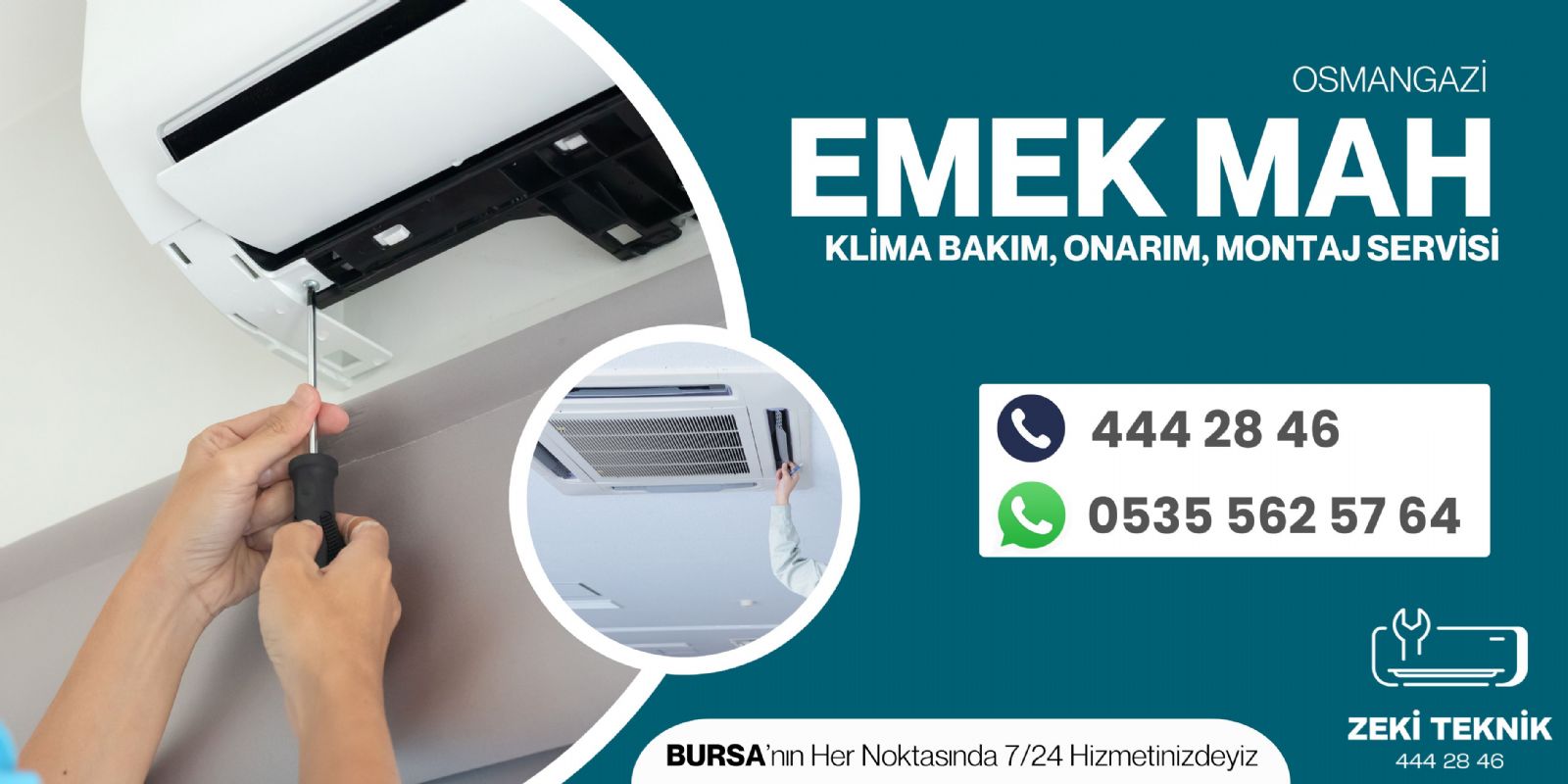 Emek Mahallesi sınırları içerisinde ikamet eden tüm dostlarımıza, klimalarının performansını zirveye taşıyacak profesyonel bakım ve onarım desteği sunuyoruz. Bursa Osmangazi uzman ekiplerimizle sorunsuz iklimlendirme garantisi veriyoruz.
